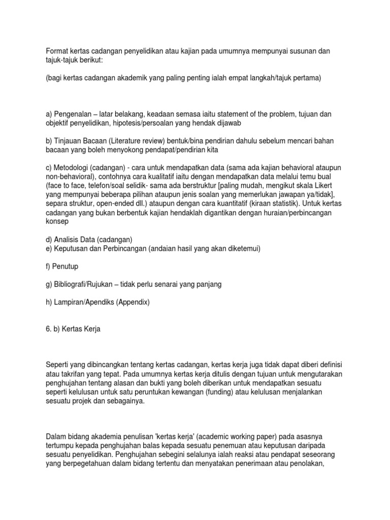 Format Kertas Cadangan Penyelidikan Atau Kajian Pada Umumnya Mempunyai Susunan Dan Tajuk Pdf